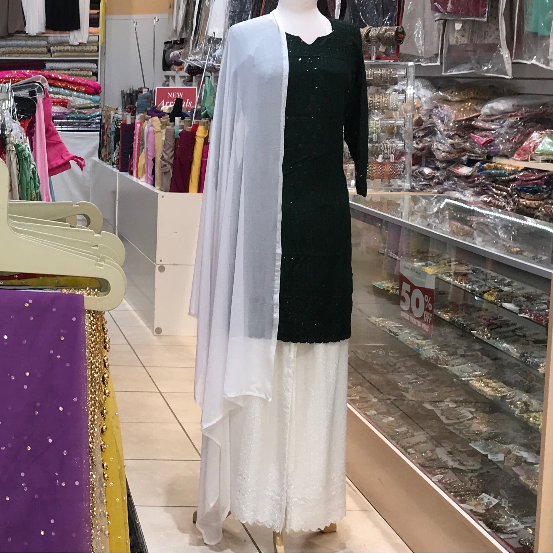 KURTA TROUSER SCARF SIZE 42 DARK GREEN
